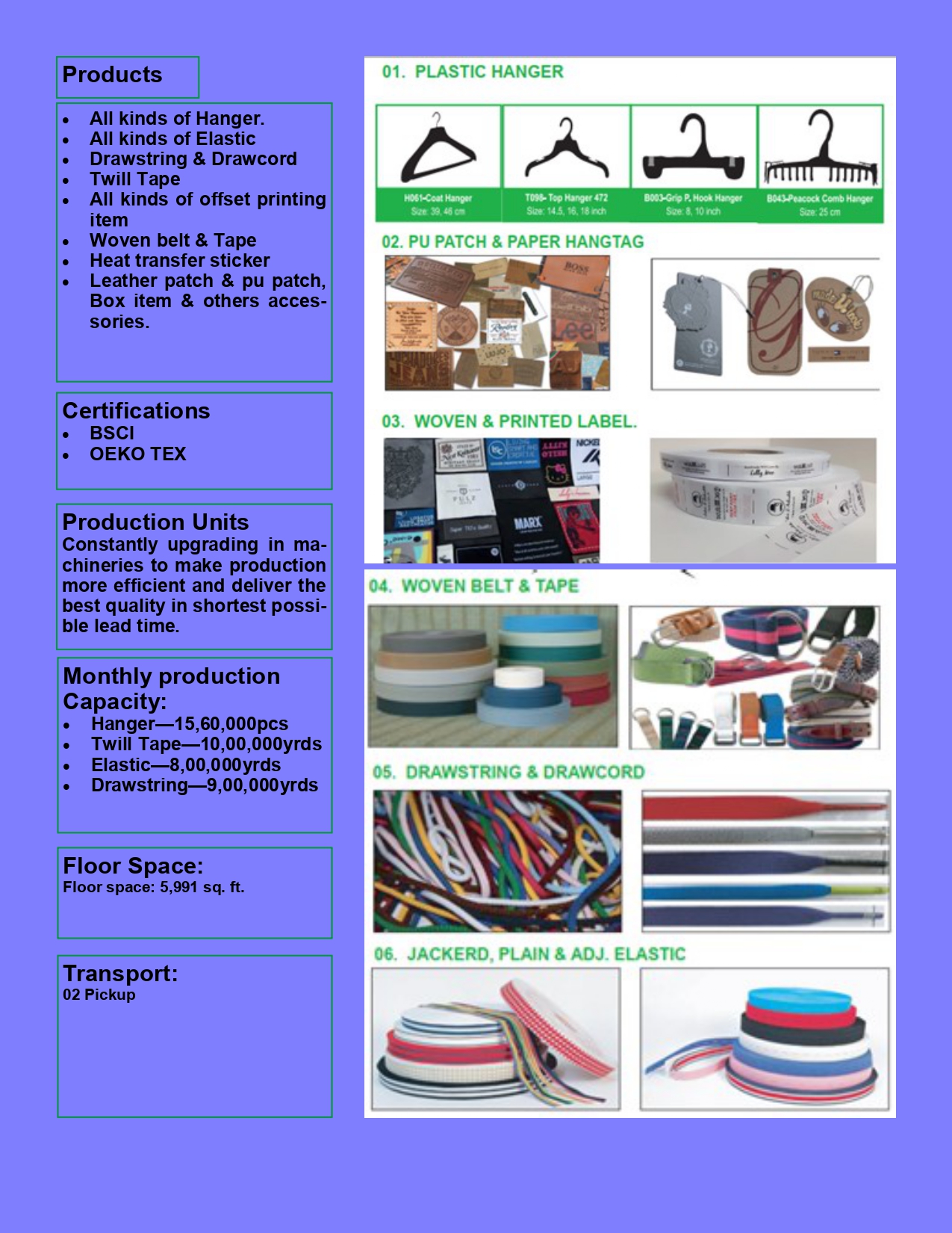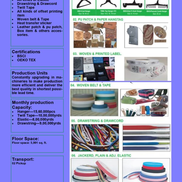 delivery and perfection in service. It firmly believes that the satisfaction of the valued customers is the focal point of its business. In no time, the brands has become a name to reckon within the manufacturers of Hager, Twill Tape, Elastic, Drawstring,